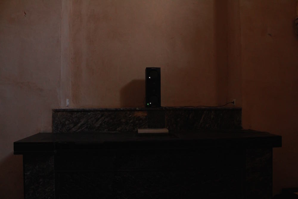 Dos de las obras que presentamos ponen en juego una estrategia de dislocación espacial, se trata de Casa y Time Piece “El Salvador”, Homenaje a Max Neuhaus. La primera de ellas procura un desplazamiento del ámbito privado al espacio público, la segunda, tomando la estructura de relojes silenciosos que el artista texano desarrolló en su serie de Moment Pieces, pone en conexión el dentro y el afuera del edificio cada 15 minutos.