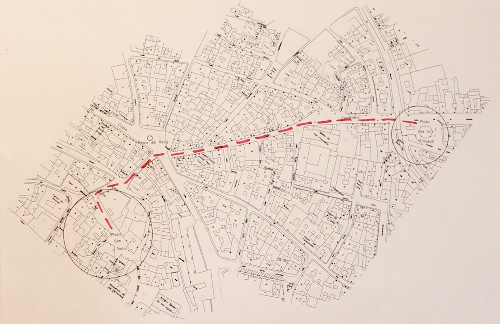 Desde el espacio virtual de la red, …se hace camino al hablar ofrece un mismo recorrido por la ciudad realizado por diferentes personas con el imperativo de no dejar de hablar; una percepción poliédrica de un mismo trayecto que bajo la narración forzada traduce la mirada en voz y pone de relieve los procesos de interpretación y de redefinición constante que se dan entre el individuo y su entorno. Si en esta pieza tanto los materiales como los procesos se vuelcan netamente al exterior, la última intervención sonora que presentamos interior-interior (interior), como su propio nombre indica, opera un movimiento opuesto. Situada en una de las capillas laterales, la obra es un espacio replegado sobre sí mismo. El sonido de la estancia vacía y en silencio, fue grabado y vuelto a proyectar sobre ese mismo espacio una y otra vez, enfatizando los modos propios de resonancia de la sala.